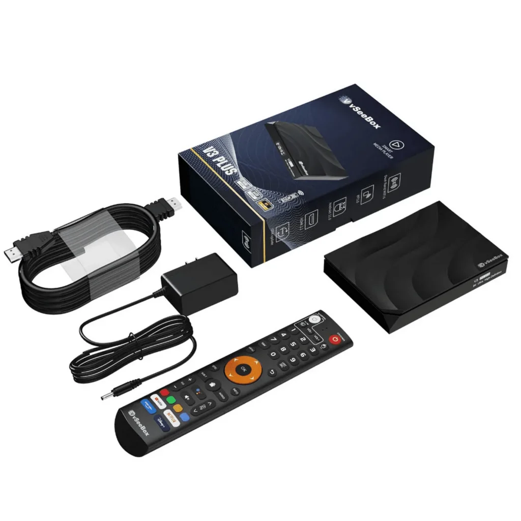 The vSeeBox V3 Plus is a 2024-2025 Android 11-based TV box designed for North American users. It offers a 30% performance boost over previous models, with dual-band Wi-Fi 6, Bluetooth 5.0, and a 7-day playback feature.