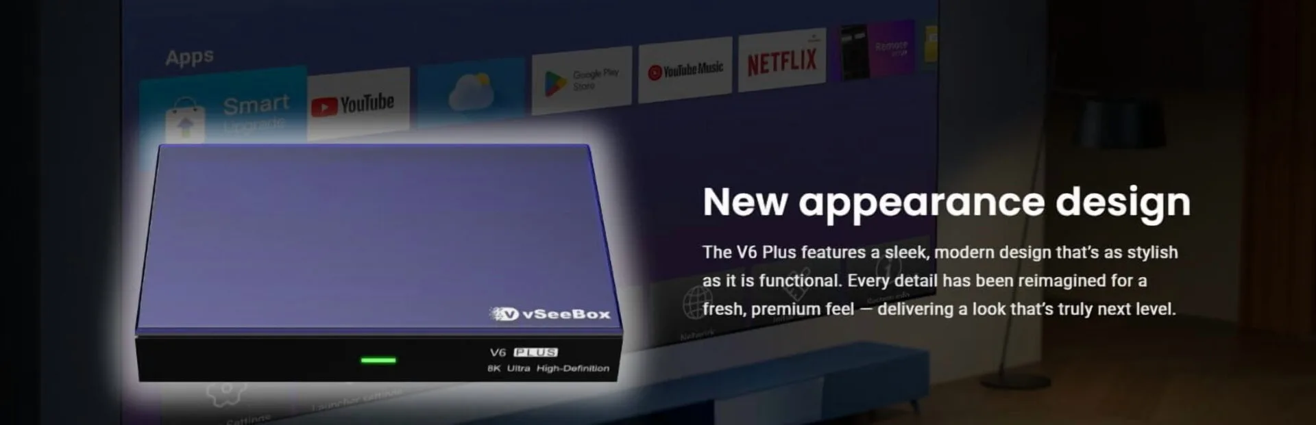 vSeeBox V6 Plus is the newest 2025 model upgraded from the 2024 V3 Plus. Compared with the previous generation v3Plus, V6plus has huge upgrades in hardware and software, with faster speed and more powerful performance!